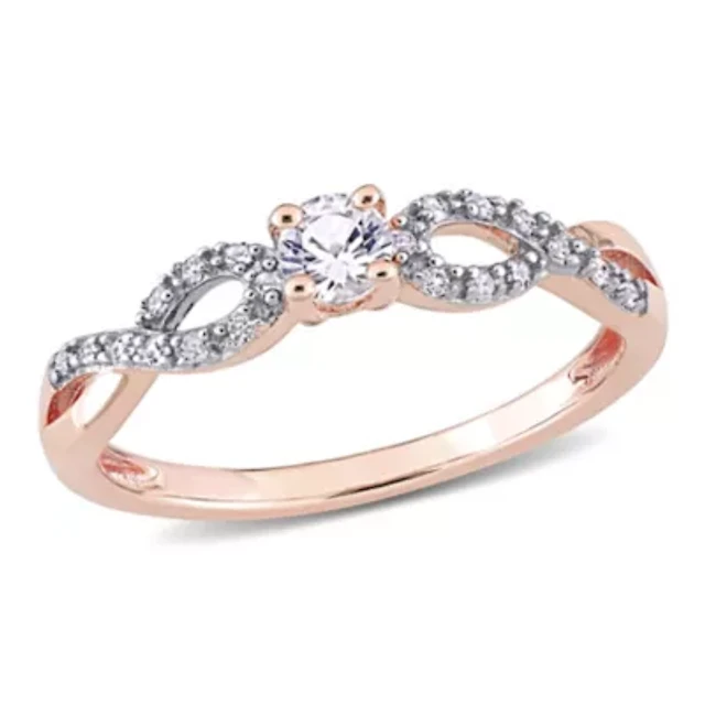 Womens Lab Created White Sapphire 18K Rose Gold Over Silver Flower Cocktail Ring