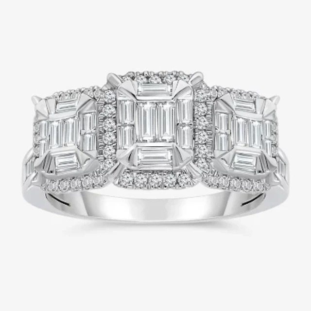 (I / I1) Womens 2 CT. T.W. Lab Grown White Diamond 10K Gold Side Stone Engagement Ring