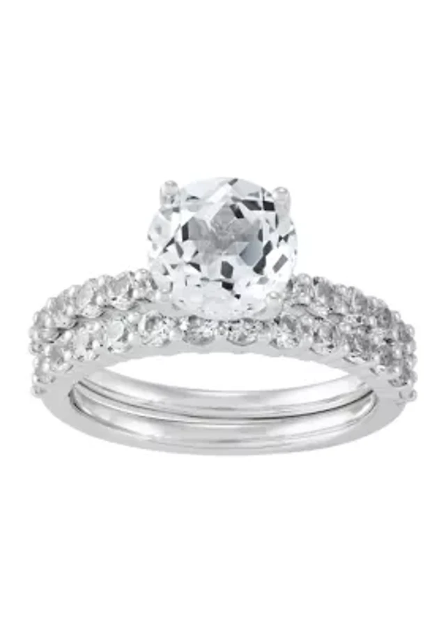 Oval-Cut Swiss Blue Topaz & White Lab-Created Sapphire Doorknocker Gift Set Sterling Silver