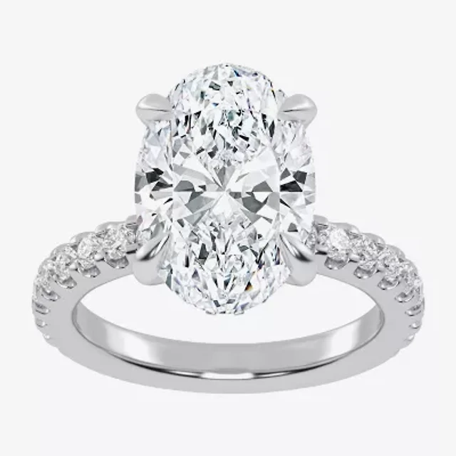 (I / I1) Womens 2 CT. T.W. Lab Grown White Diamond 10K Gold Oval Side Stone Engagement Ring