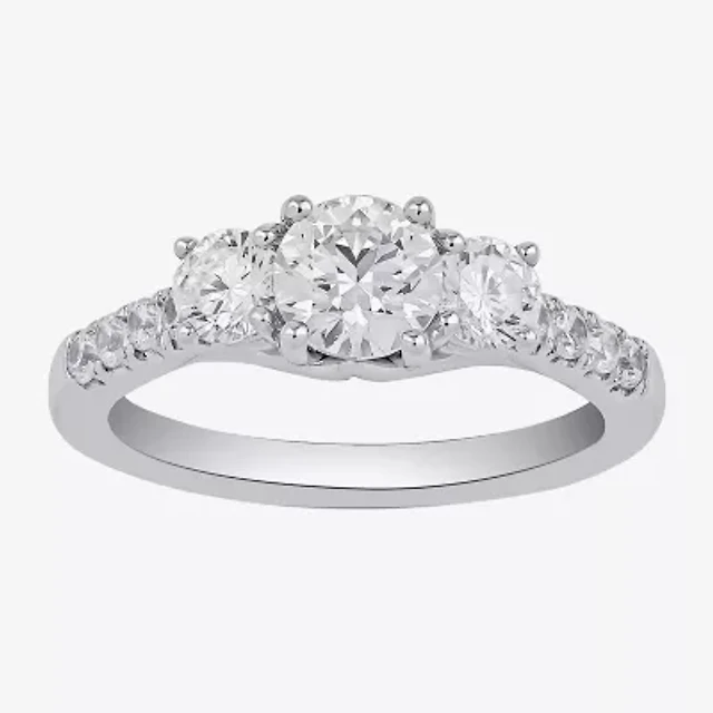 Love Lives Forever (H-I / Si2) Womens 1 1/2 CT. T.W. Lab Grown White Diamond 10K Gold Oval Side Stone 3-Stone Engagement Ring
