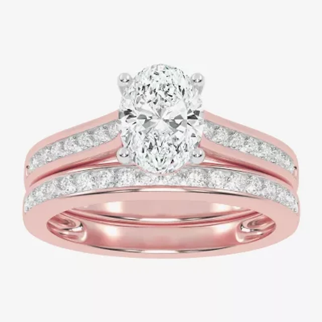 Signature By Modern Bride (G / Vs2-Si1) Womens 4 CT. T.W. Lab Grown White Diamond 14K Gold Oval Side Stone Bridal Set