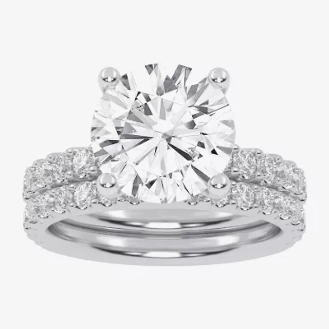 Signature By Modern Bride (G / Si1-Si2) Womens 4 CT. T.W. Lab Grown White Diamond 10K Gold Oval Side Stone Bridal Set