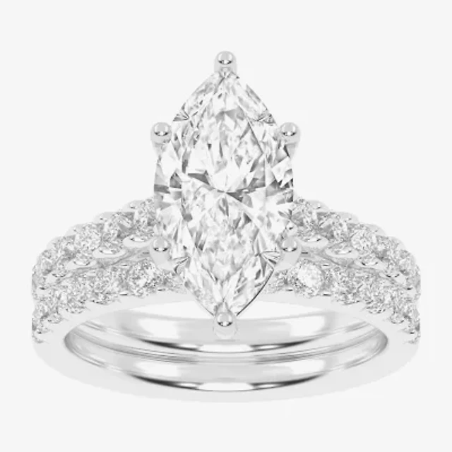 Signature By Modern Bride (G-H / Vs2-Si1) Womens 2 CT. T.W. Lab Grown White Diamond 14K Gold Cushion Side Stone Bridal Set