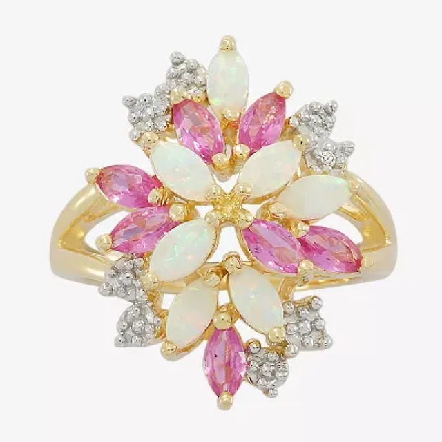 Womens Lab Created White Opal 14K Gold Over Silver Side Stone Cocktail Ring