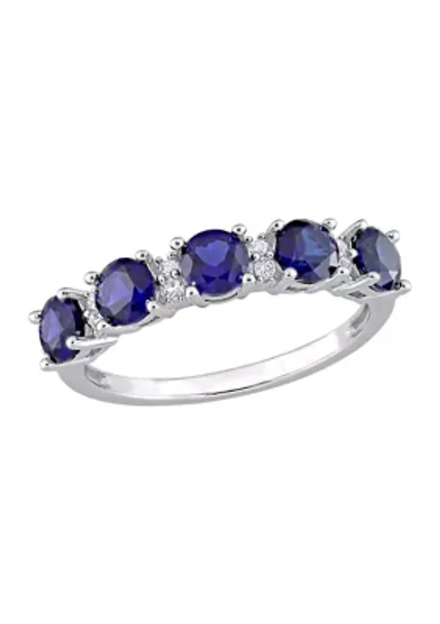 Womens Lab Created Blue Sapphire or Ruby Sterling Silver Stackable Ring