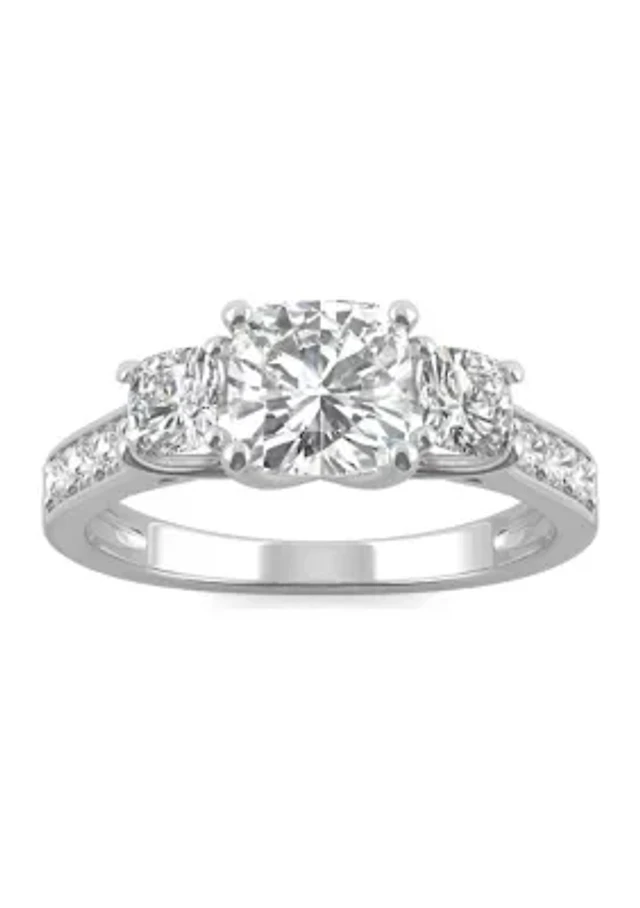Womens Lab Created White Moissanite 10K Gold 3-Stone Engagement Ring