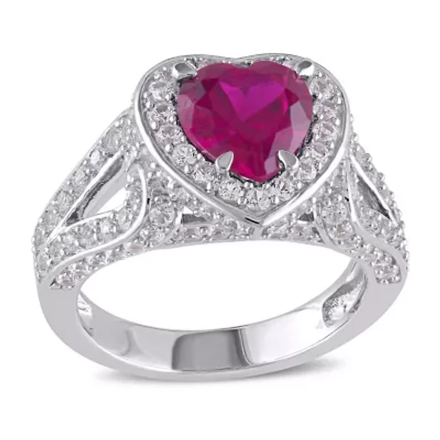 Womens Lab Created Red Ruby 10K Gold Heart Solitaire Cocktail Ring