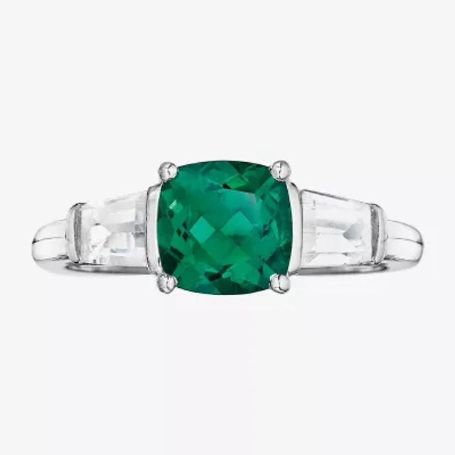 Womens Lab Created Green Emerald 14K Gold Over Silver Cocktail Ring