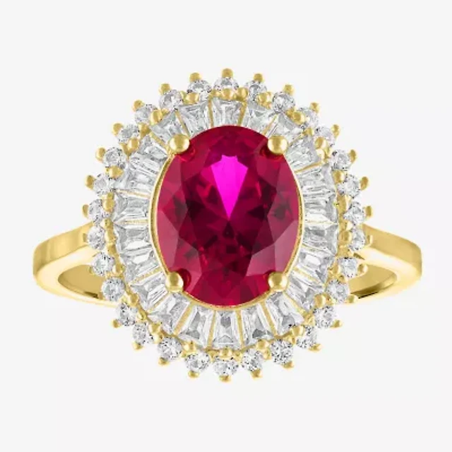 Womens Lab Created Red Ruby 14K Gold Over Silver Halo Side Stone Cocktail Ring