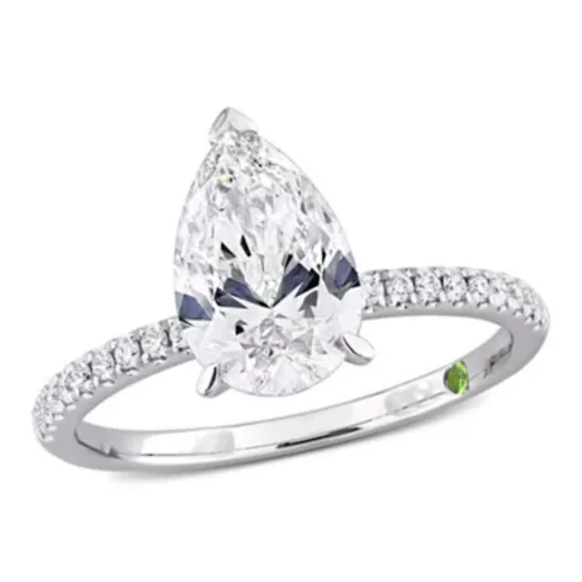 1.5 ct. t.w. Lab Created Diamond with Tsavorite Accent Halo Engagement Ring 14K White Gold