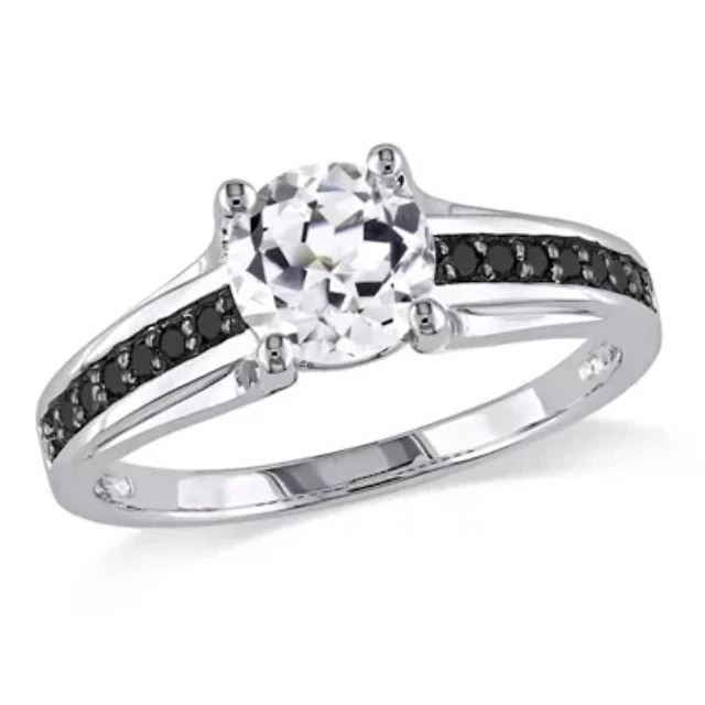 1/3 CT. T.W. Color-Enhanced Black Diamond & Lab-Created Sapphire Engagement Ring Sterling Silver