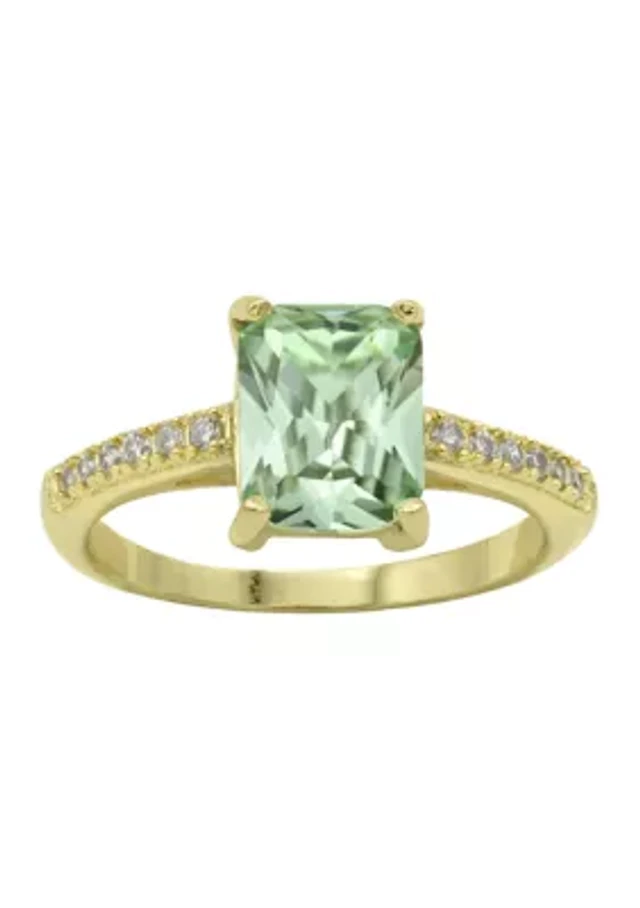 Womens Lab Created Green Yttrium Aluminum Garnet 14K Gold Over Silver Cushion Side Stone Cocktail Ring