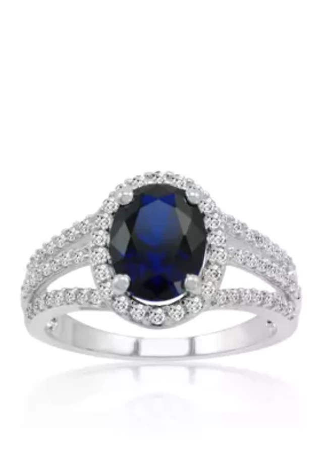 Lab Grown Silver Tone Clear CZ Oval with Pave Halo Ring