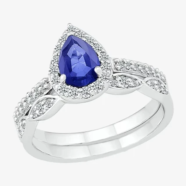 Modern Bride Gemstone Womens Lab Created Blue Sapphire 14K Gold Round Bridal Set