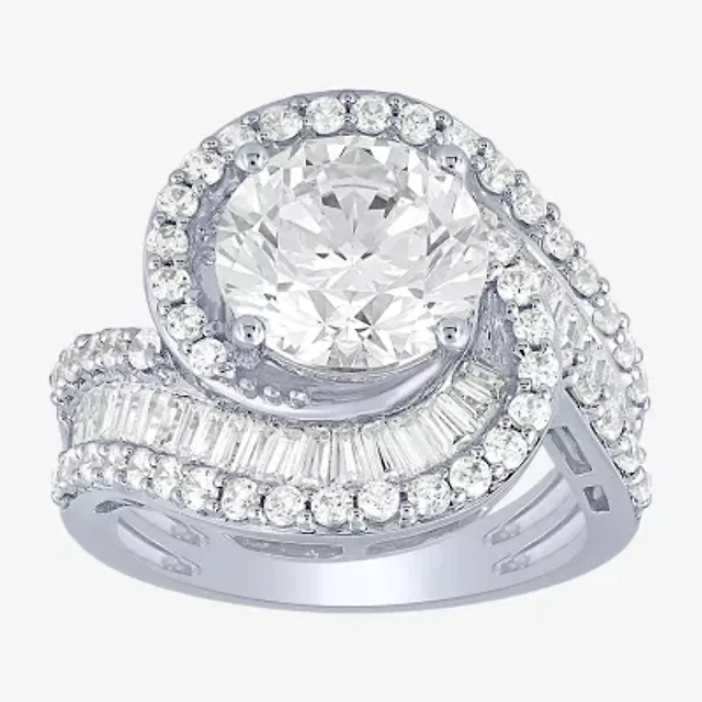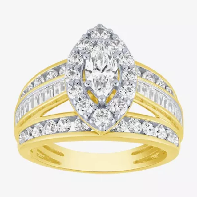 (I / I1) Womens 2 CT. T.W. Lab Grown White Diamond 10K Gold Side Stone Halo Engagement Ring