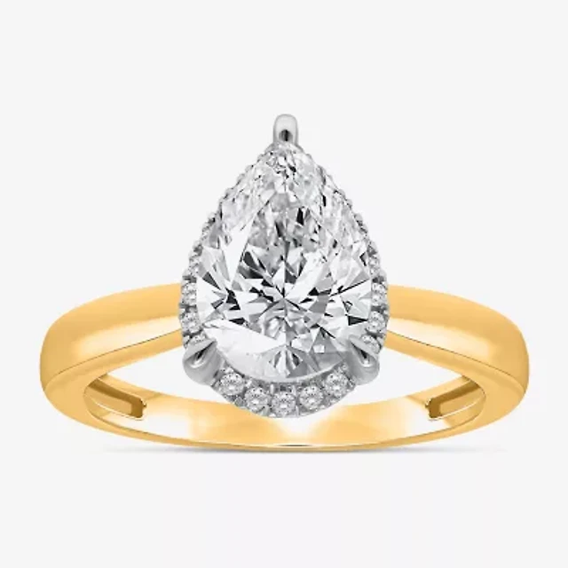 (I / I1) Womens 1 CT. T.W. Lab Grown White Diamond 10K or 14K Gold Pear Solitaire Engagement Ring