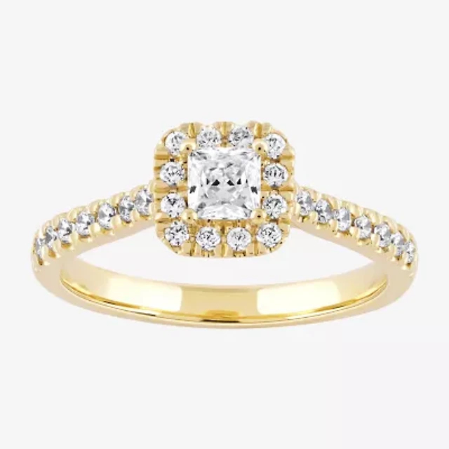 (G / Si1-Si2) Womens 1 CT. T.W. Lab Grown White Diamond 10K Gold Side Stone Halo Engagement Ring