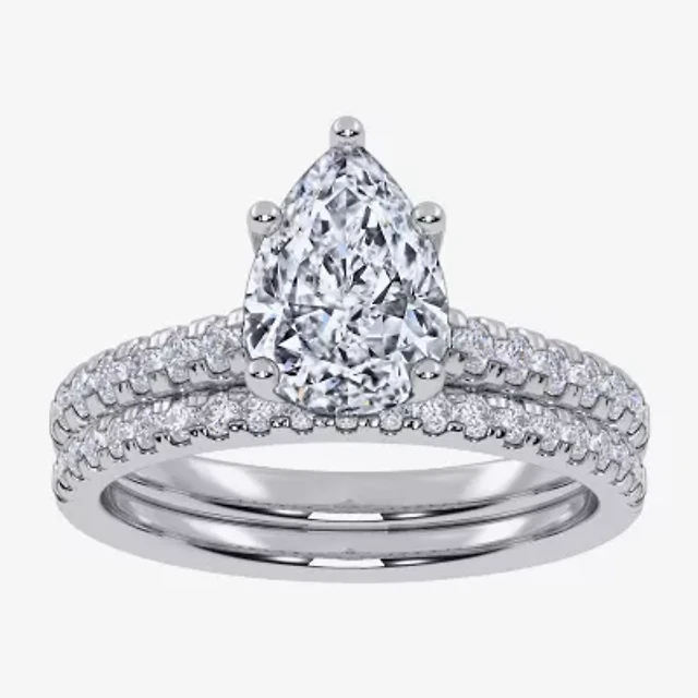G-H / Si1-Si2) Womens / CT. T.W. Lab Grown White Diamond 14K Gold Pear Side Stone Halo Bridal Set