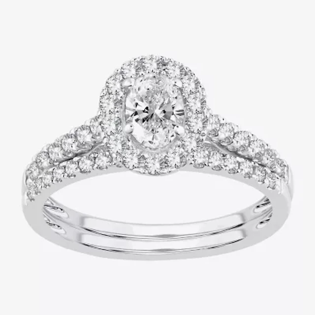 Signature By Modern Bride (G / Si1-Si2) Womens 5 CT. T.W. Lab Grown White Diamond 14K Gold Oval Side Stone Halo Bridal Set