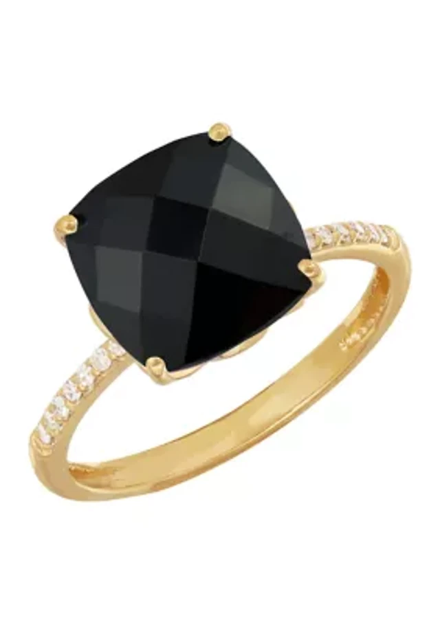 1/20 ct. t.w. Diamond and Onyx Ring in 10K Yellow Gold