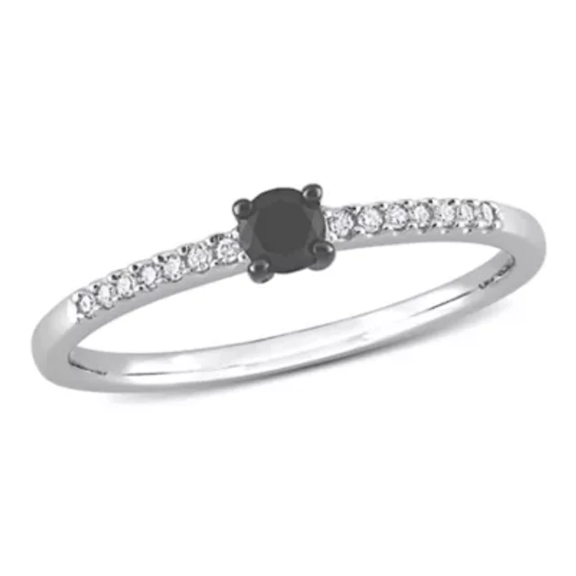 Maleficent (I, I2) Womens 1/5 CT. Genuine Black Spinel Sterling Silver Round Crossover Cocktail Ring