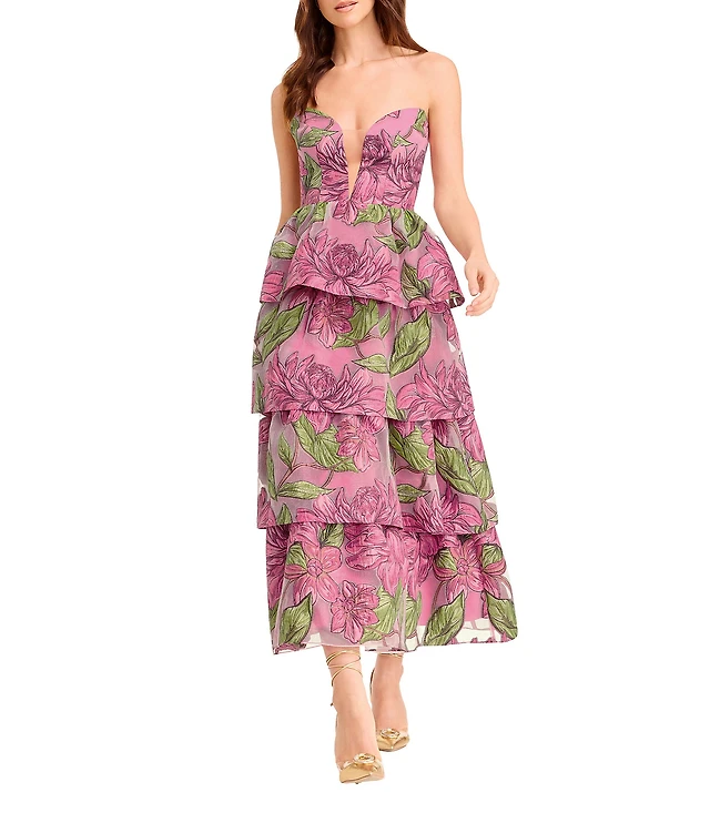 Pear Culture Plus Size Floral Printed Mesh Strapless Tiered A-Line Dress