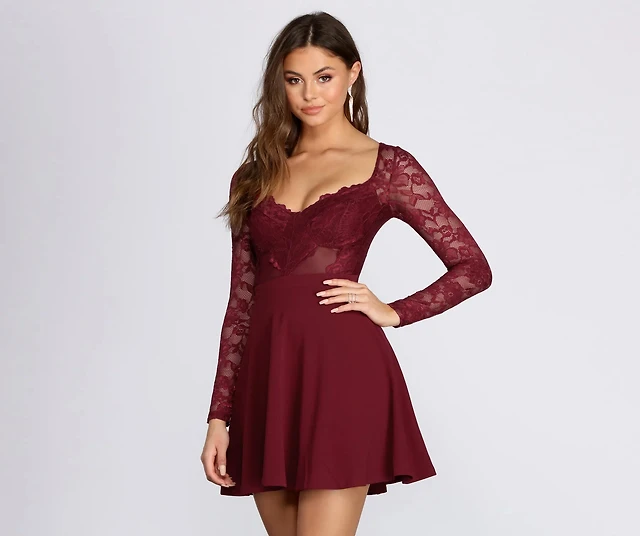 Rochelle Ruffled Sheer Lace Formal Mini Dress