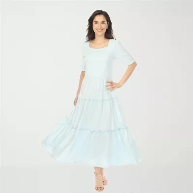 White Mark Square Neck Short Sleeve Tiered Womens Elbow Maxi Dress