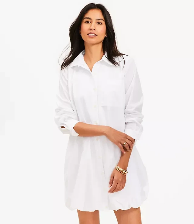 Plus Long Sleeve Collar Neck Solid Cotton Shirtdress