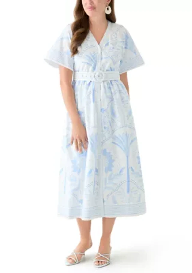 Girls 4-6x Eyelet Button Down Dress with Flutter Sleeves