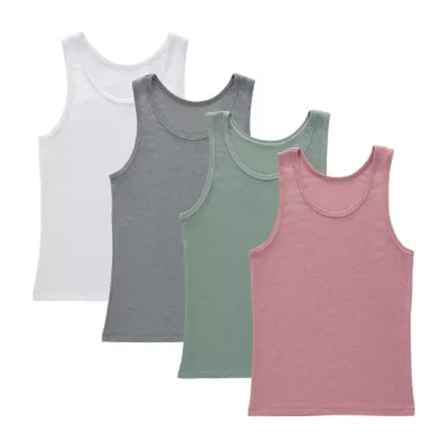 Hanes Originals Supersoft Little & Big Kid Girls U Neck Sleeveless 4 Pack Tank