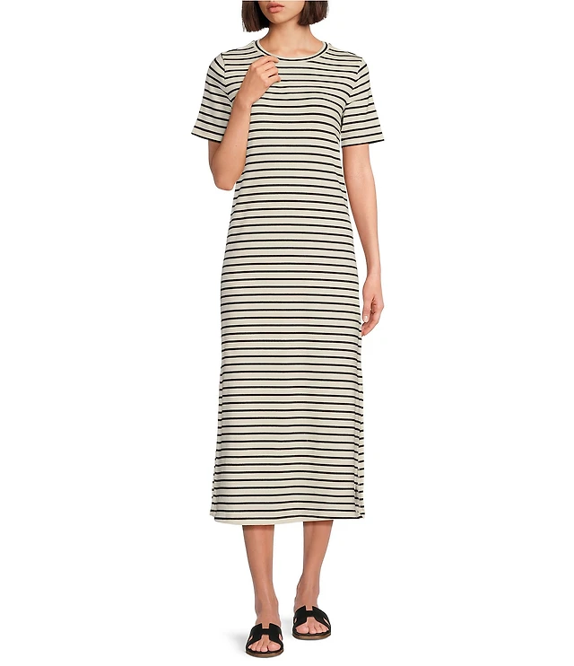 Le' AL.X Stripe Stretch Knit Crew Neck Short Sleeve T-Shirt Midi Dress