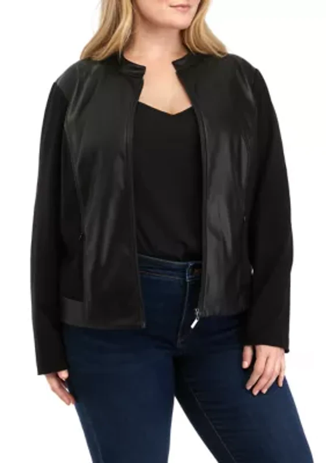 Plus Linen Patch Pocket Jacket with Roll Tab Sleeves