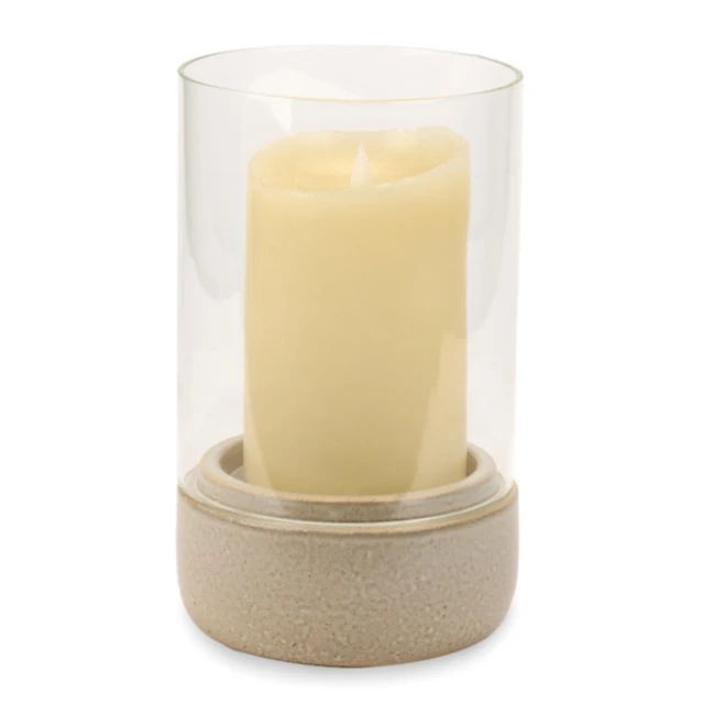 Ceramic Candle Holder with Glass Hurricane, 10 in.