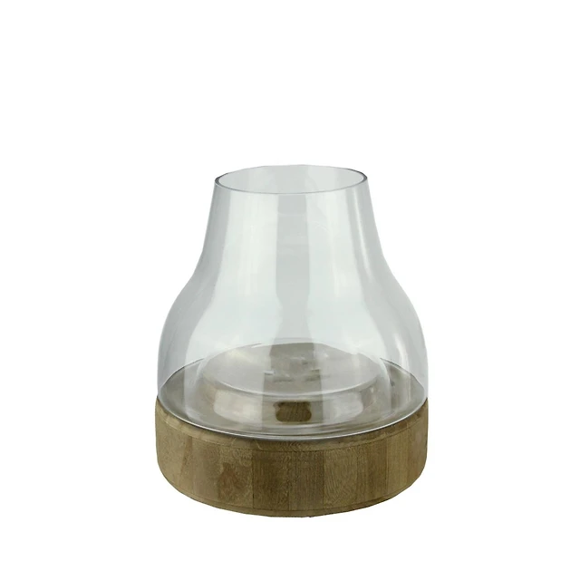15.25" Glass Hurricane and Wood Pillar Candle Holder