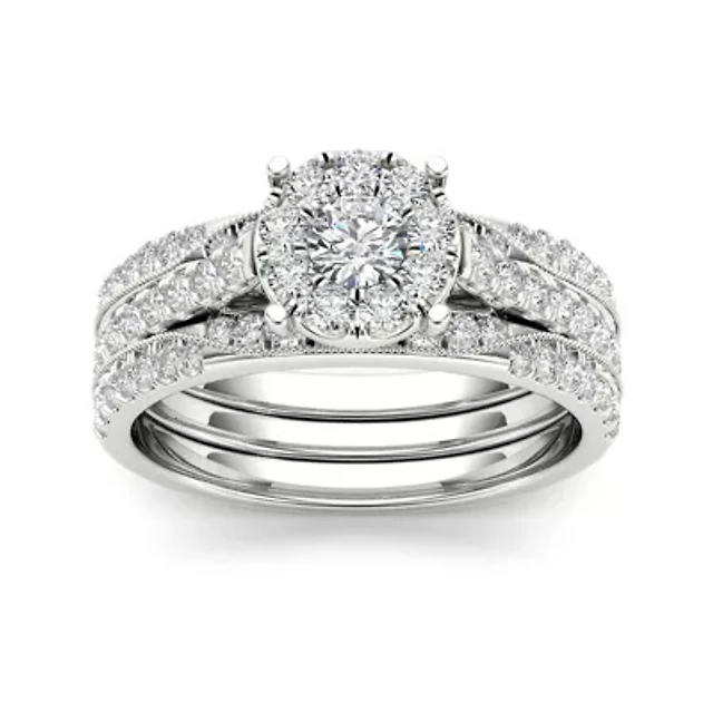 (G / Si2) Womens 2 CT. T.W. Lab Grown White Diamond 10K Gold Round Side Stone Bridal Set
