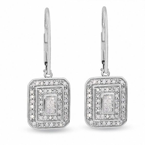 3/4 CT. T.w. Diamond Double Cushion-Shaped Frame Drop Earrings in 10K White Gold