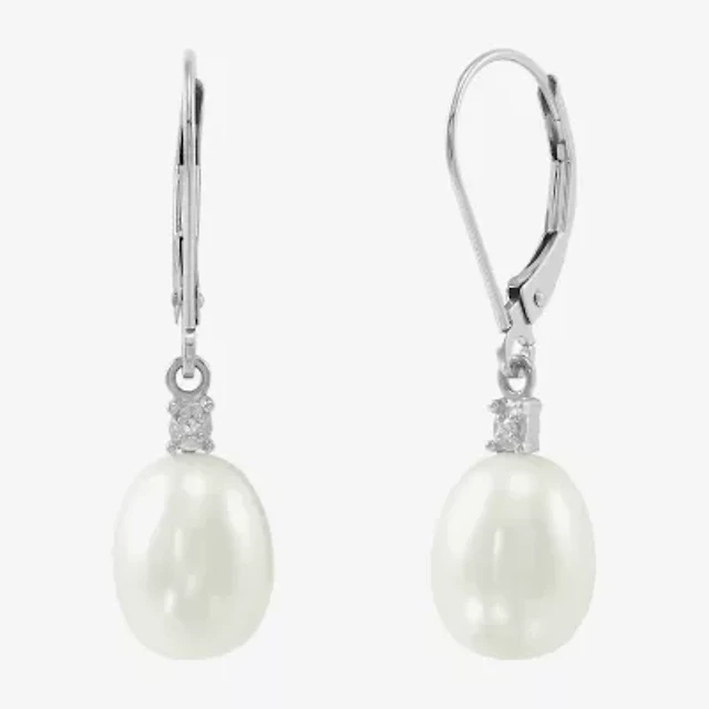 Womens Diamond Accent Natural White Cultured Freshwater Pearl 10K White Gold Drop Earrings