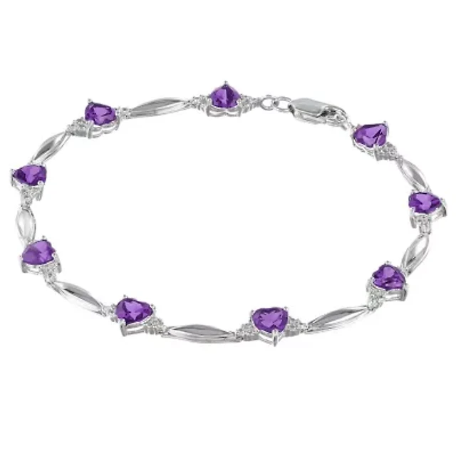 5.0mm Heart-Shaped Amethyst and Lab-Created White Sapphire Twisted Ribbon Link Bracelet in Sterling Silver - 7.25"