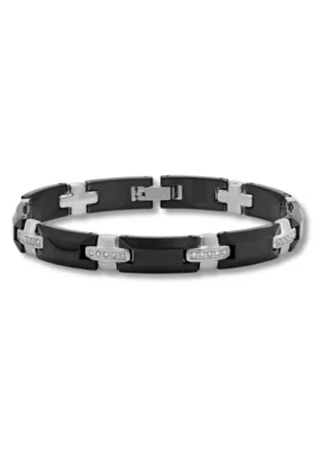Enhanced Black and White Diamond Accent Double Infinity Bangle in Sterling Silver