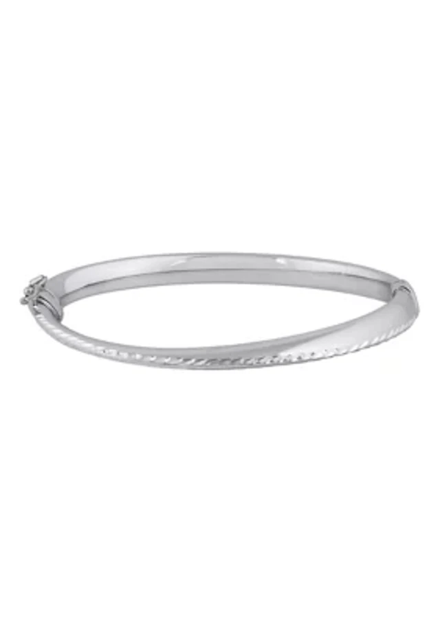 10K Gold over Sterling Silver 6mm Diamond-Cut Checkered Bangle - 7.5"