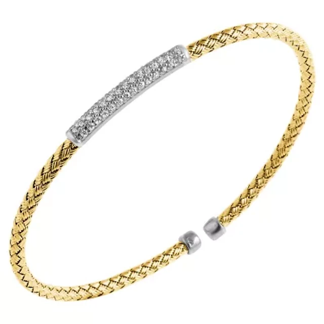 1/10 CT. T.W. Diamond Bangle in 18K Gold-Plated Sterling Silver - 7.5"