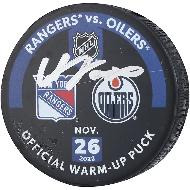 Adam Fox New York Rangers Autographed Practice-Used Puck Used During Warmups vs. Edmonton Oilers on November 26, 2022
