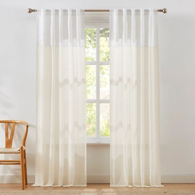 Ivory Embroidery Scallop Curtain Panel Set, 84 in.