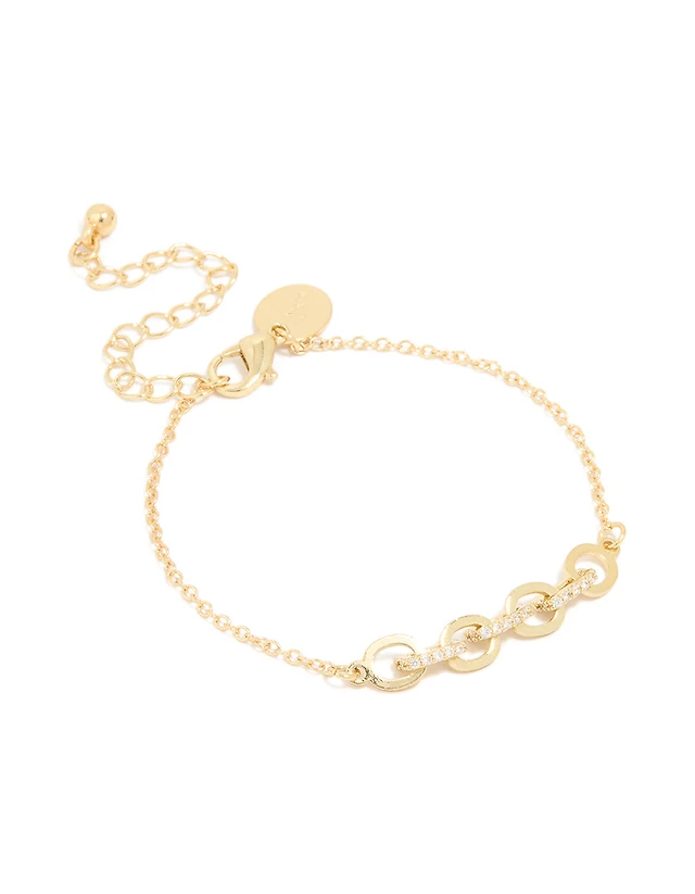 Gold Plated Brass Alternating Cubic Zirconia Round Link Bracelet