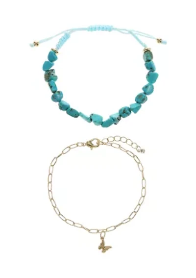 10K Gold Cable Chain Bracelet with Heart Charms - 7"