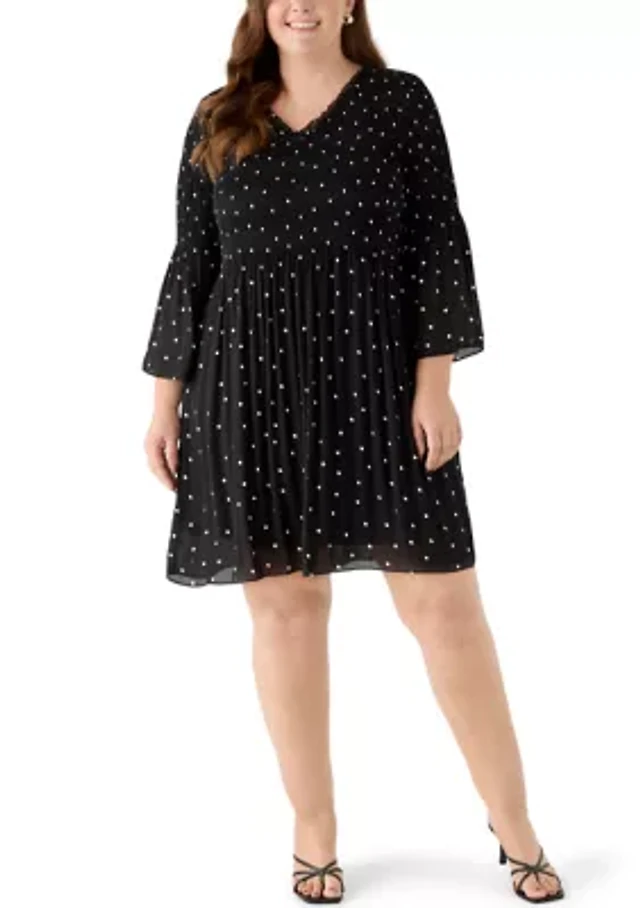 Plus Short Sleeve Ruff Yoke Dress