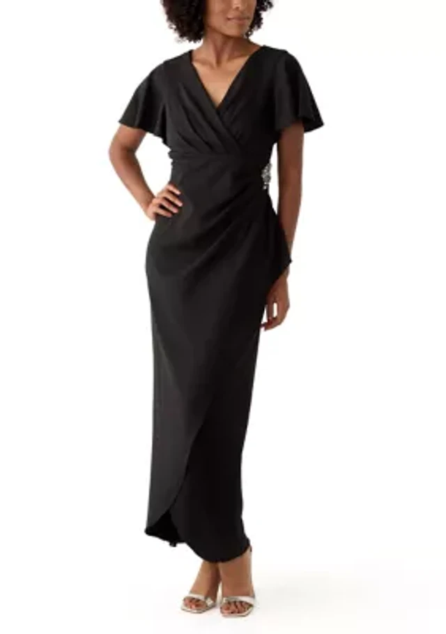 Petite Flutter Sleeve V-Neck Dress