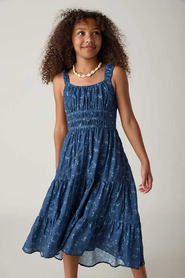 Toddler Girl Organic Cotton Tiered Dress in Rosebud Petal Print